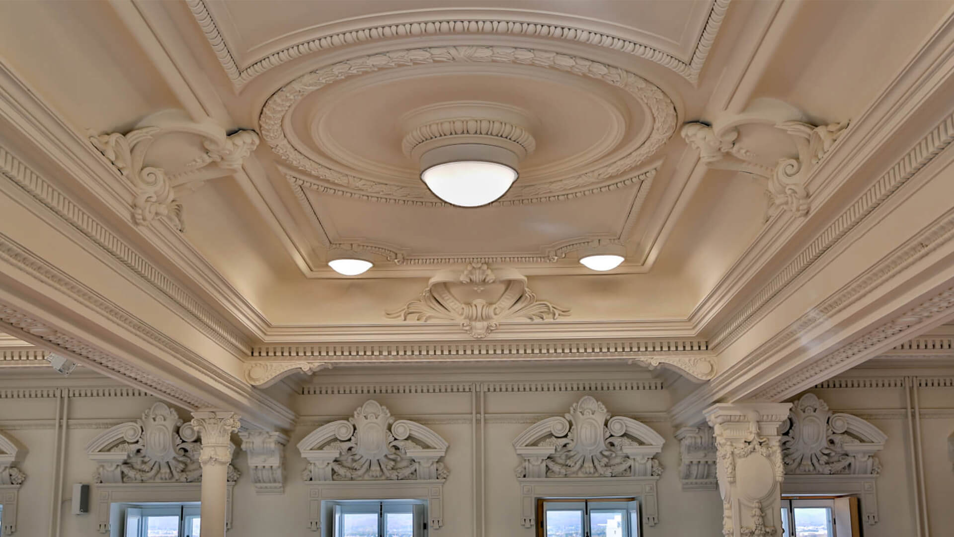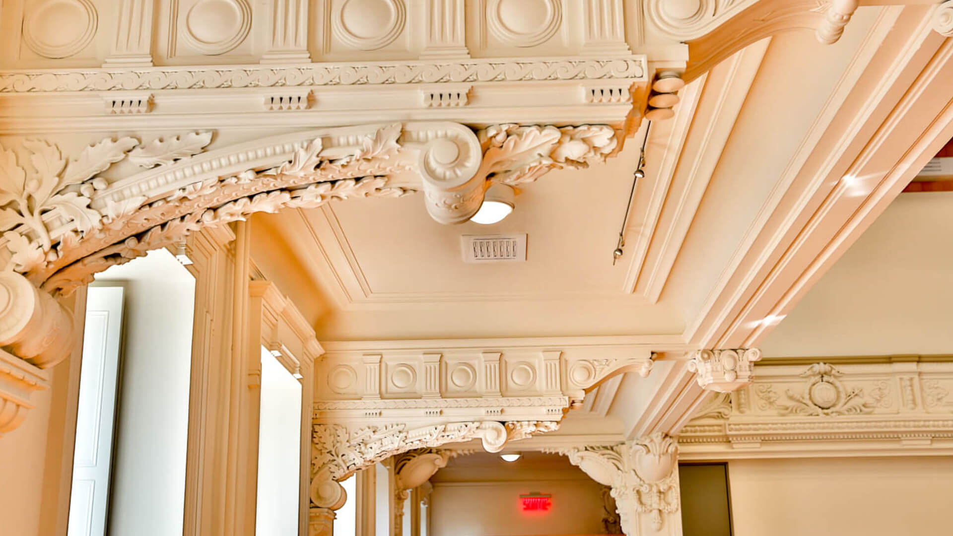 Béland Lapointe avait comme mandat de complètement rénové et restauré deux étages de ce magnifique pavillon, dont la salle de réception et l’aménagement d’une salle multimédia dans laquelle il fallait préserver l’architecture originale avec ses motifs de plâtre hors du commun, ses moulures et ses lambris.